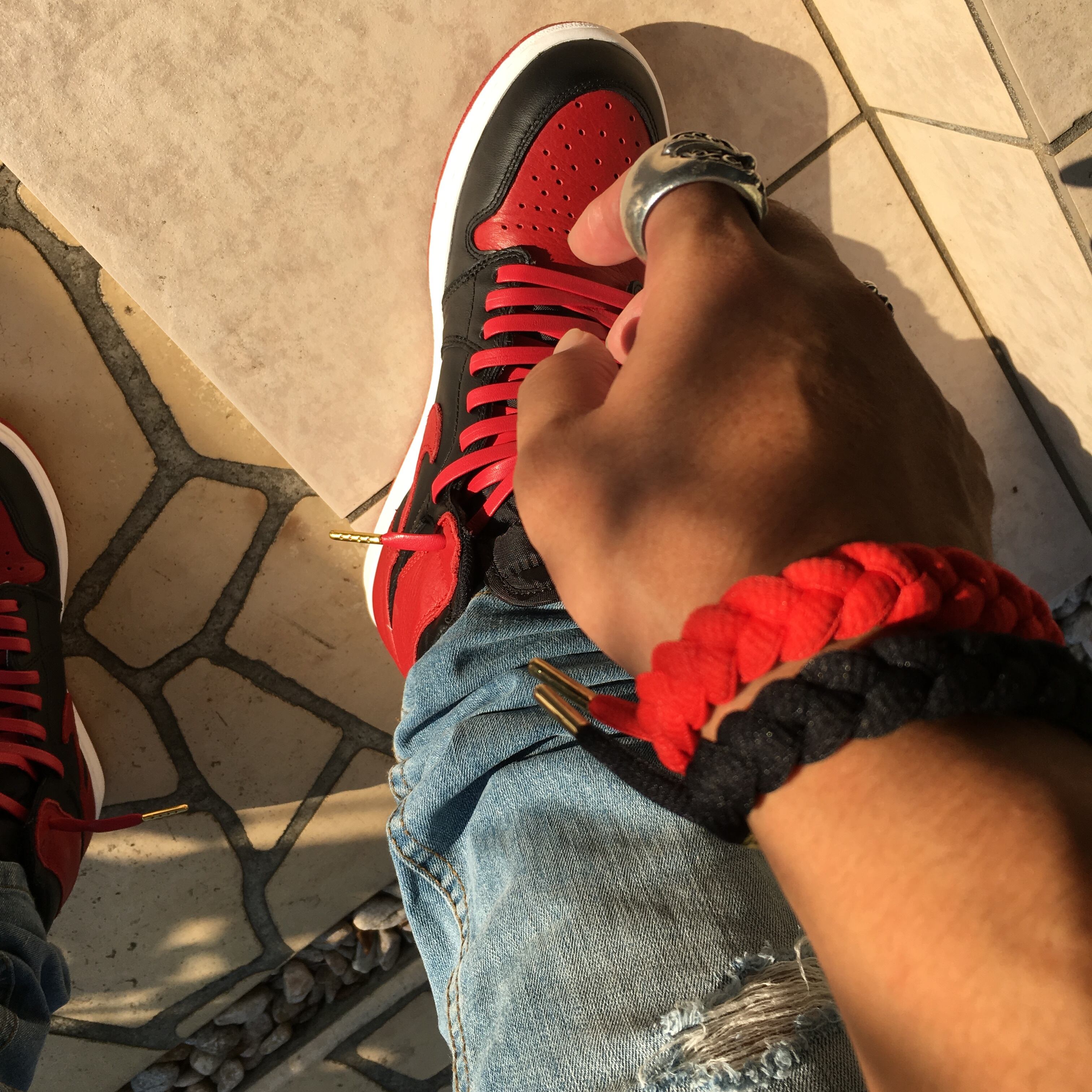 腕に通すのもいいですが足に通してもアクセントになっていいと思いますよ☆